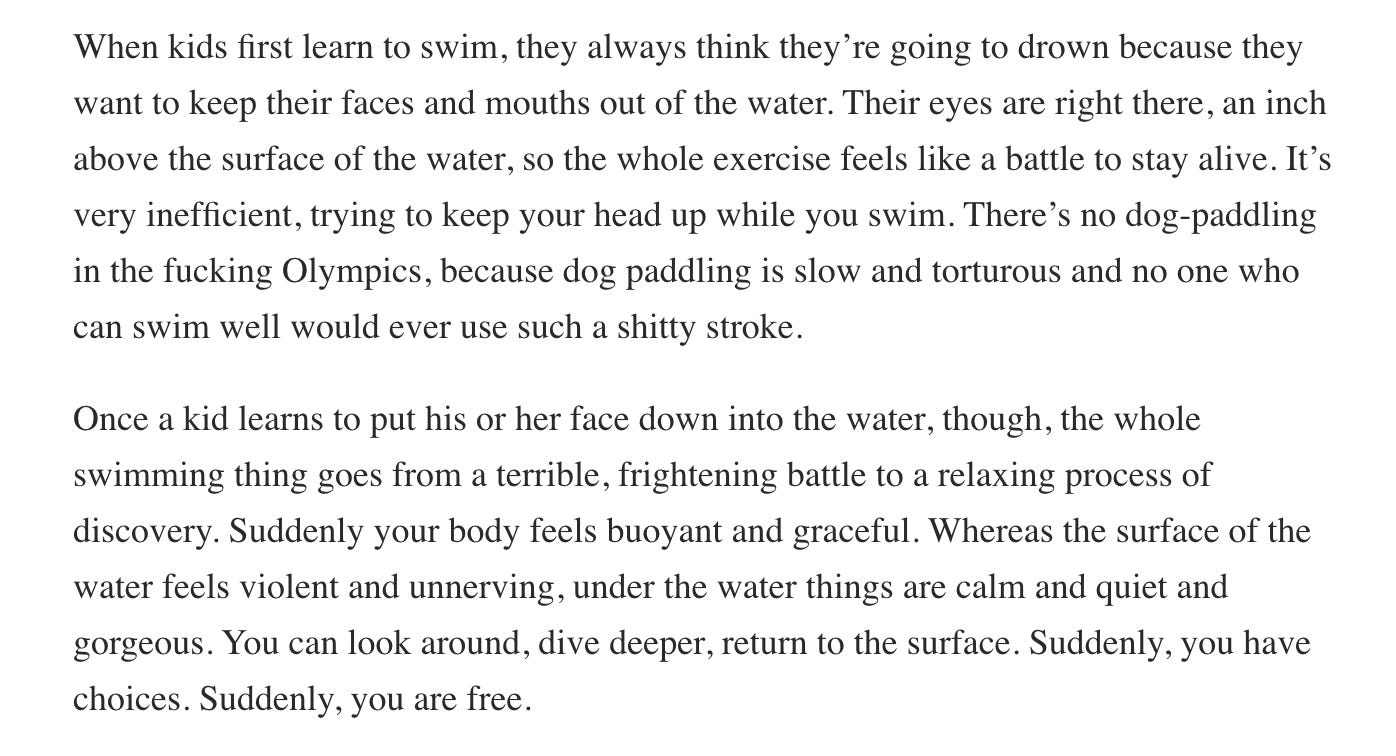 Oh jesus god- THANK YOU- for being able to pull the thread of the things I've been struggling with for decades, that so few people ever talk about, and then somehow phrasing and addressing it in a way that actually gets thorough. I'm getting a real lesson in FEELINGS right now. The wave is currently pummeling me into the sand, and I'm having a hell of a time not resisting or seeing that there could be any joy on the other side. But this, it helps.