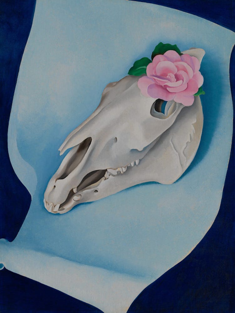 Horse’s Skull with Pink Rose (1931) by Georgia O’Keeffe